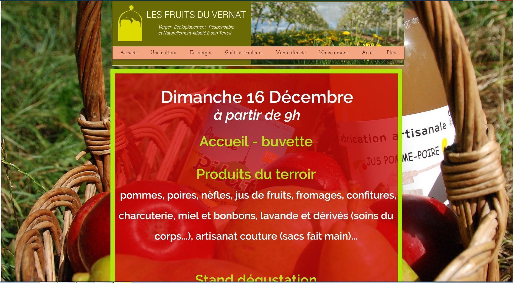 Lors d'un moment convivial, venez découvrir de nombreux produits du terroir dont un panel de variété de pommes proposées par les Fruits du Vernat ainsi que nos poires...